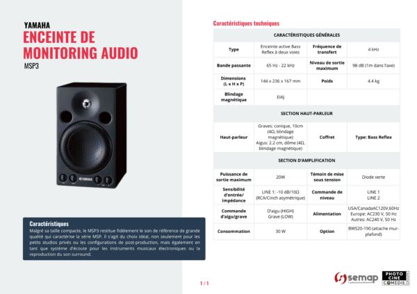 Malgré sa taille compacte, le MSP3 restitue fidèlement le son de référence de grande qualité qui caractérise la série MSP. Il s’agit du choix idéal, non seulement pour les petits studios privés ou les configurations de post-production, mais également en tant que système d’écoute pour les instruments musicaux électroniques ou la reproduction du son surround.