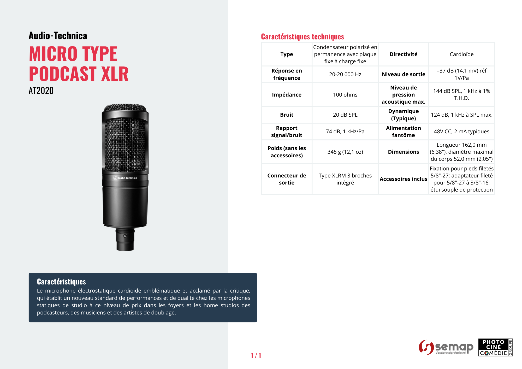 Micro type podcast XLR – AUDIO TECHNICA AT2020