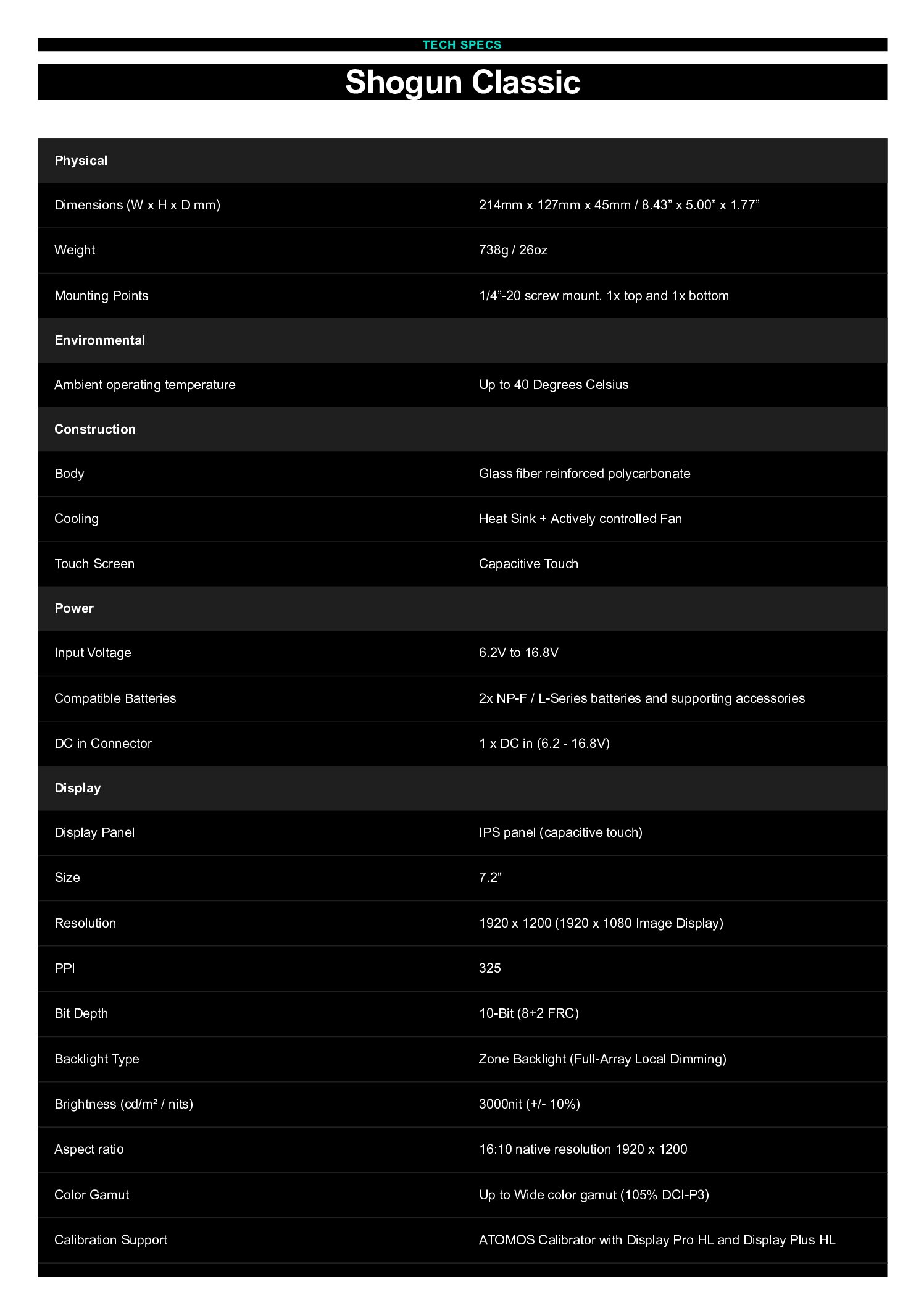 L’Atomos Shogun Classic est un moniteur‑enregistreur 7 pouces ultra lumineux (3000 nits) pour surveiller et enregistrer vos vidéos en direct, idéal pour les tournages professionnels. Il prend en charge l’enregistrement 4K ProRes ou DNx et la capture de plusieurs flux 1080p ISO, tout en offrant un affichage HDR précis. Avec ses outils de monitoring comme LUT 3D, false color, focus peaking et waveform, il permet un contrôle créatif complet de l’image.