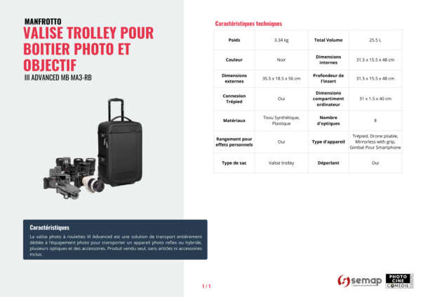 Valise trolley pour boitier photo et objectif – MANFROTTO III ADVANCED MB MA3-RB